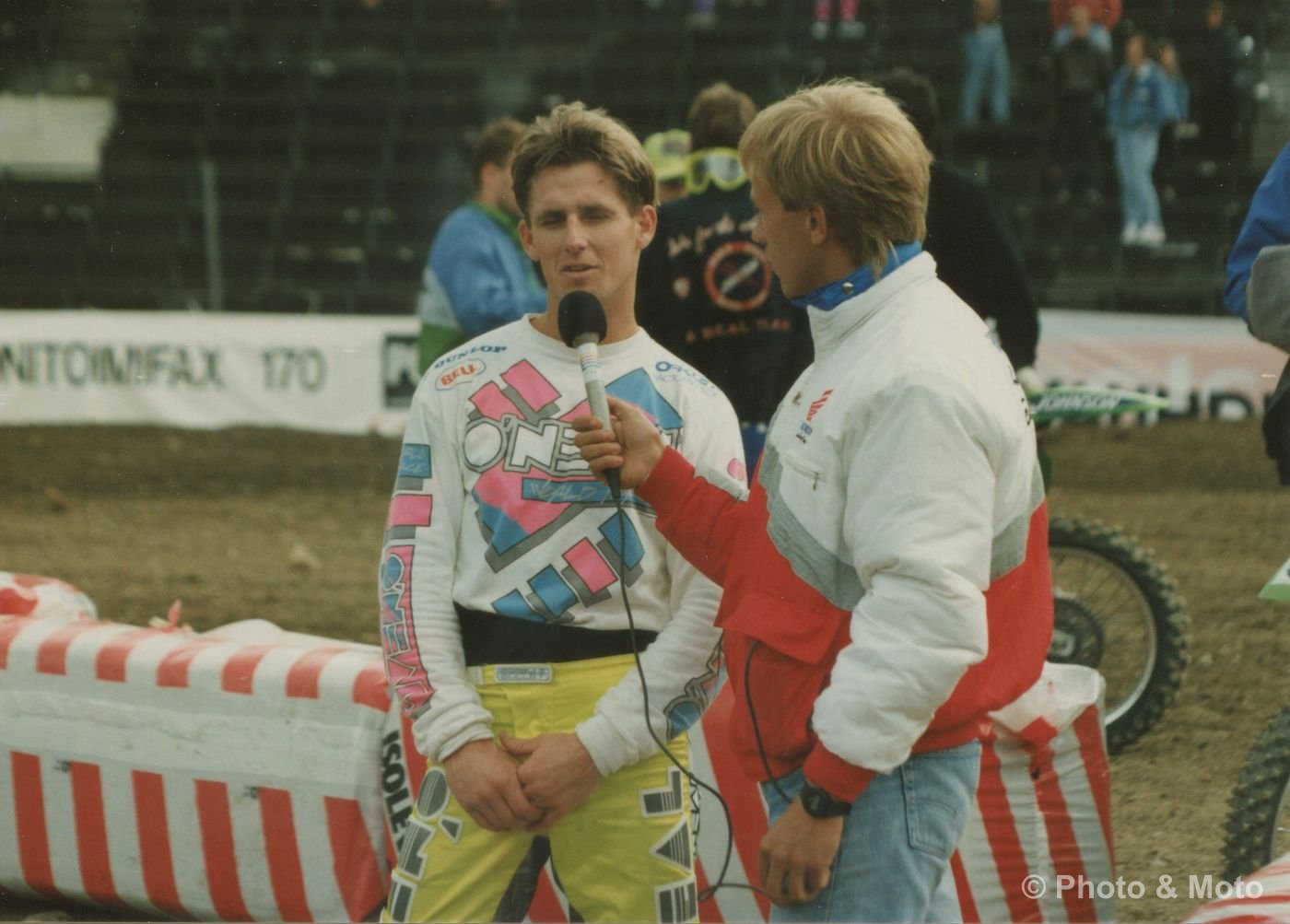 Helsinki Olympiastadion supercross 1991 M.Craig Mika Koukin haastateltavana
